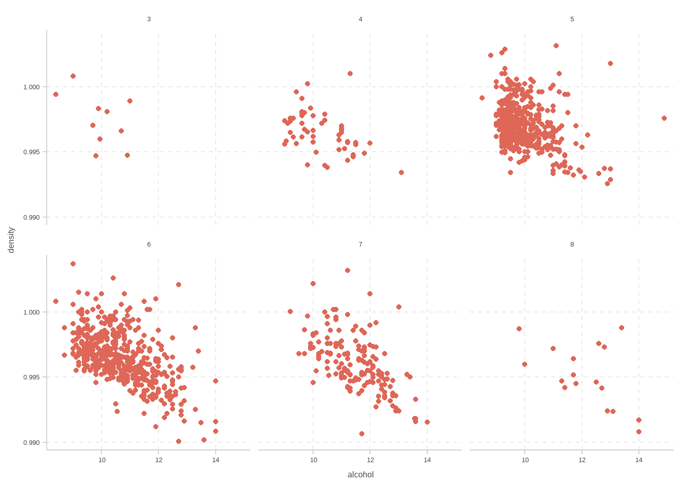 geom_point(mapping=aes(x=alcohol,y=density))+