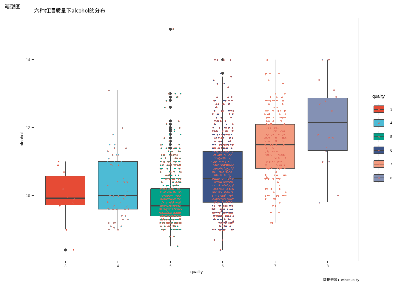 ## 多样本位置检验:六种质量下的红酒酒精浓度中位数是否不同?